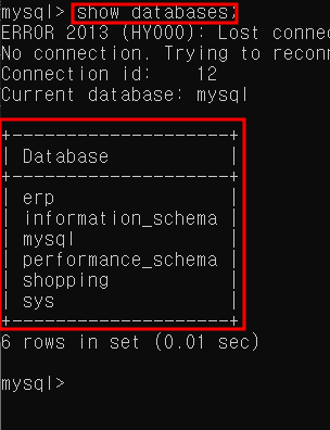 select database(); => 내가 지금 어느 database안에 들어와 있는지 확인