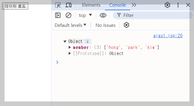 - ajax1.jsp : 버튼 클릭시 @controller에서 값 출력한 rest_json.do에서 값을 그대로 가져옴