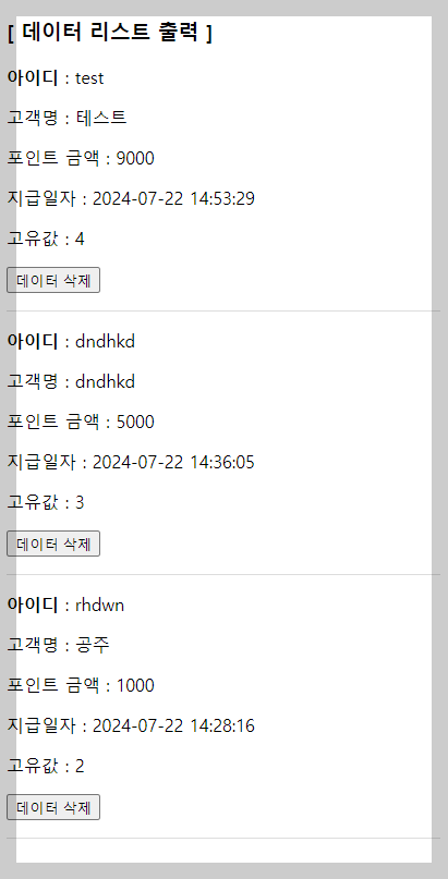 [3, dndhkd, 5000, dndhkd, 2024-07-22 14:36:05] 해당 번호에 맞는 배열 잘찍힙니당..