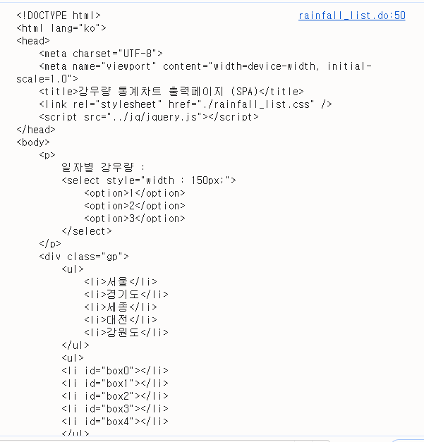16. rainfall_list.jsp : select=>option 선택시 ajax 로 값을 전송