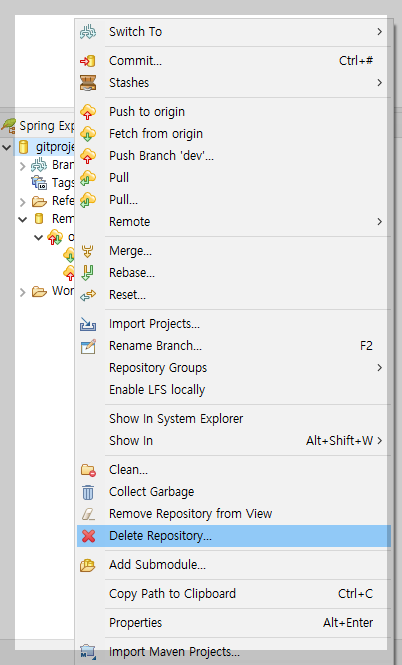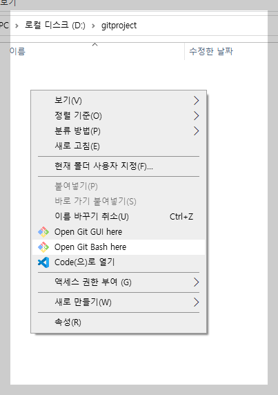 3. pull : 해당 폴더를 가져오고 싶으면 프로젝트명에서 우클릭 ->