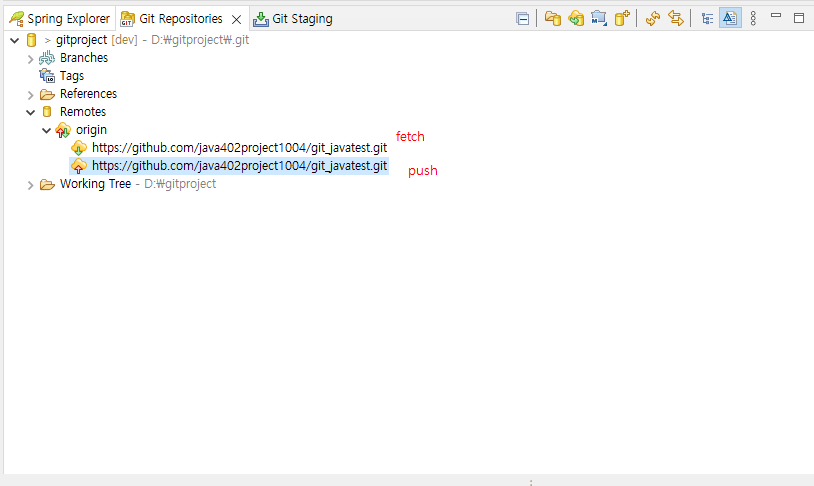 1. fetch : origin폴더의 첫번째꺼(fetch) 우클릭 --> fetch -> configuration 하면 프로젝트에 몇개 수정되었는지 표시