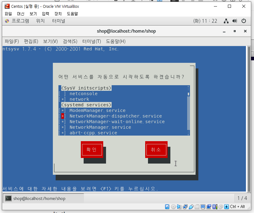 데몬 관리 리스트 프로그램 실행 명령어