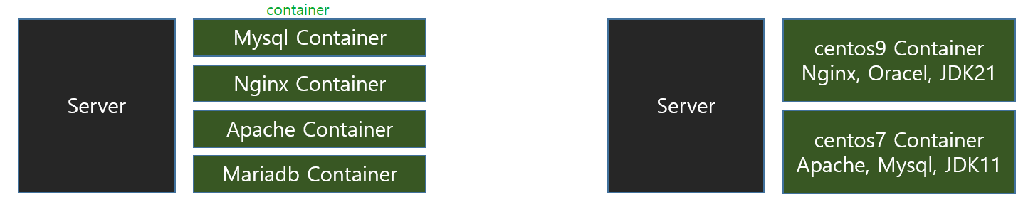 - 일반사용자 docker start container 이름 입력하여 작동시킴