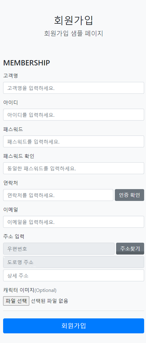 <p class="lead">회원가입 샘플 페이지</p>