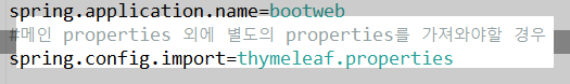 기존 application.properties 여기에 있던 thymeleaf 부분 thymeleaf.properties 여기에 복붙 후