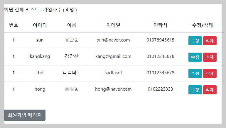 //회원가입 및 로그인 ,회원리스트 ,회원 삭제, 회원정보수정