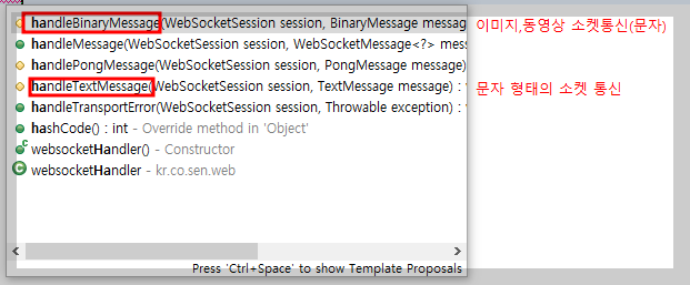//TextWebSocketHandler : 문자로 메세지 전송하는 형태