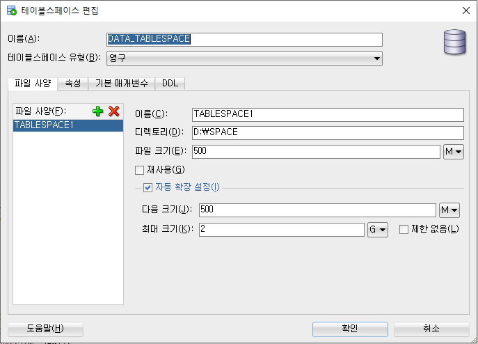 1. Tablespace - Table을 생성할 때 사용하는 공간