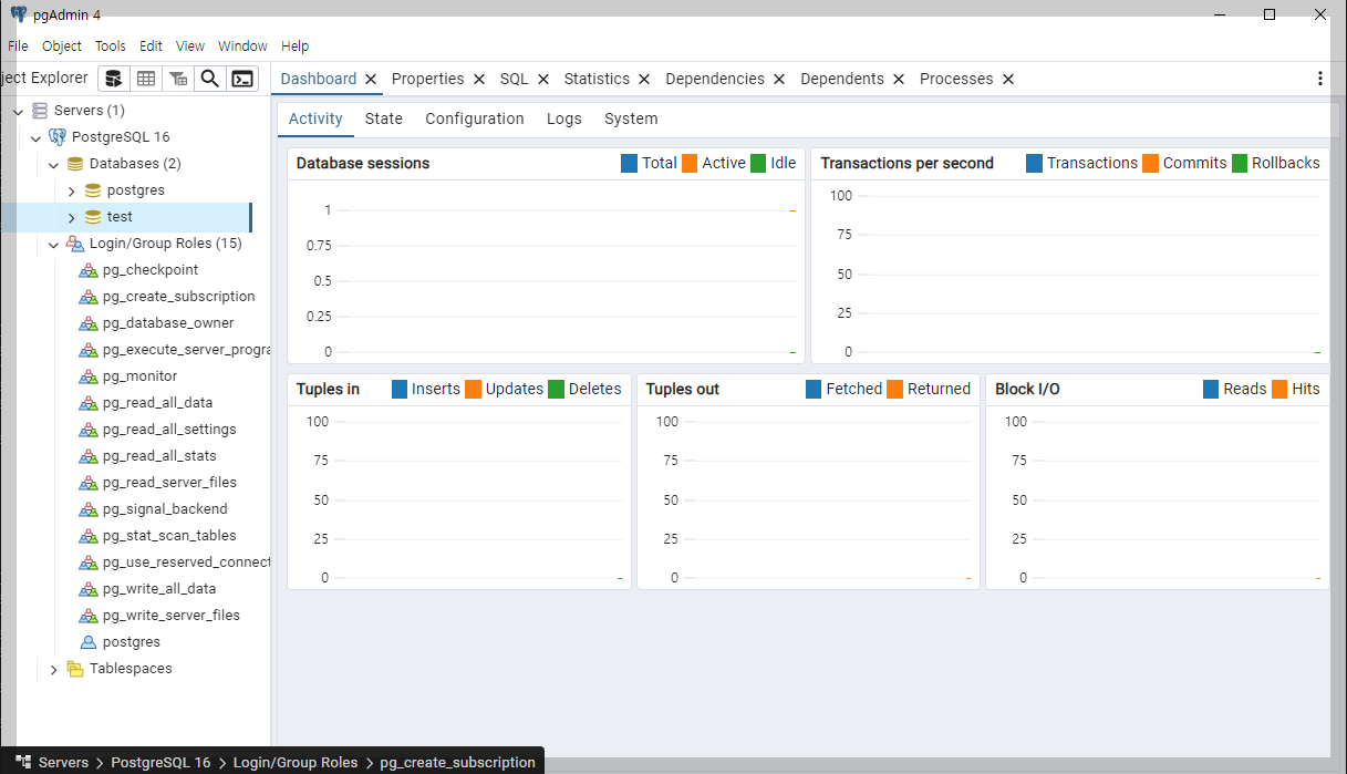 - superuser (모든권한) , createdb (db생성 권한) , createuser(신규 사용자 추가 권한)