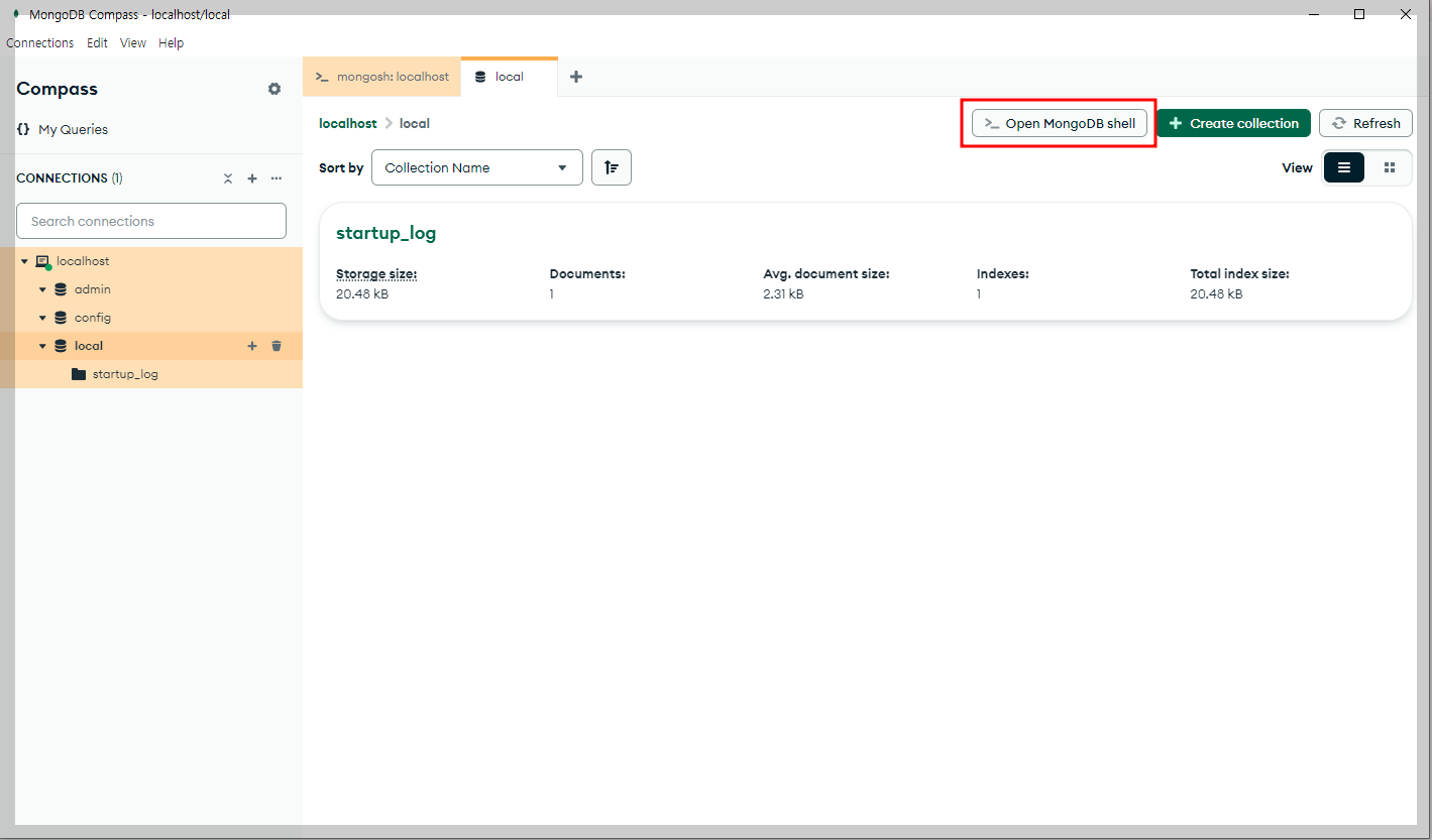 show collections => 해당 데이터베이스 안에 collection 리스트 출력