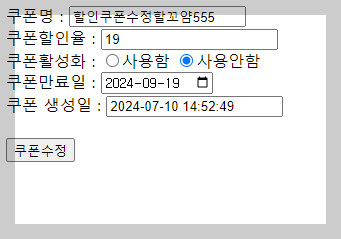 -> 수정 버튼 클릭 ( coupon_modifyok.do 로 보냄)