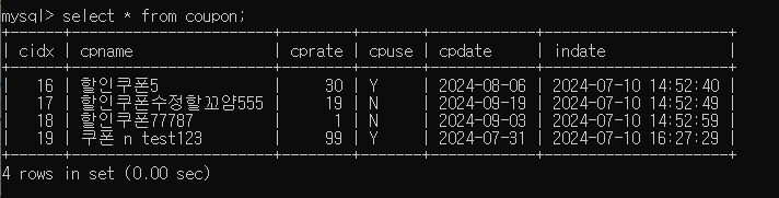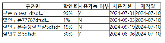 <%@ page language="java" contentType="text/html; charset=UTF-8" pageEncoding="UTF-8"%> <%@ taglib prefix="cr" uri="http://java.sun.com/jsp/jstl/core" %> <%@ taglib prefix="fn" uri="http://java.sun.com/jsp/jstl/functions" %> <%@ taglib prefix="sql" uri="http://java.sun.com/jsp/jstl/sql" %> <sql:setDataSource var="db" driver="com.mysql.cj.jdbc.Driver" url="jdbc:mysql://localhost:3306/cms" user="hana" password="hana1234" /> <!-- 요렇게도 쓰고 --> <!-- <sql:query var="ps" sql="select * from coupon" dataSource="${db}" /> --!> <!-- 요렇게도 쓰는데 이걸 더 추천 --> <cr:set var="table" value="coupon"/> <cr:set var="order" value="order by cidx desc"/> <sql:query var="ps" dataSource="${db}"> select * from ${table} ${order} </sql:query> <!DOCTYPE html> <html> <head> <meta charset="UTF-8"> <title>jstl로 database 연결</title> </head> <body> <table border="1" cellpadding="0" cellspacing="0"> <thead> <tr> <th>쿠폰명</th> <th>할인율</th> <th>사용가능 여부</th> <th>사용기한</th> <th>제작일</th> </tr> </thead> <tbody> <cr:forEach var="row" items="${ps.rows}"> <cr:set var="cpname_length" value="${fn:length(row['cpname'])}" /> <tr> <!-- 범위 글자수 이상이 되었을 경우 말줄임표가 나오도록 하는 부분 --> <cr:if test="${cpname_length>5}"> <cr:set var="jum" value="dfsdf..."/> </cr:if> <td>${fn:substring(row['cpname'],0,10)}${jum}</td> <td>${row['cprate']}%</td> <td>${row['cpuse']}</td> <td>${row['cpdate']}</td> <td>${fn:substring(row['indate'],0,10)}</td> </tr> </cr:forEach> </tbody> </table> </body> </html>