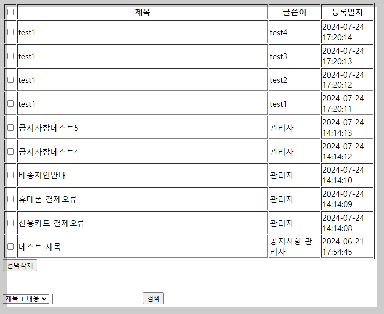 //게시판 게시물 전체 출력 메소드