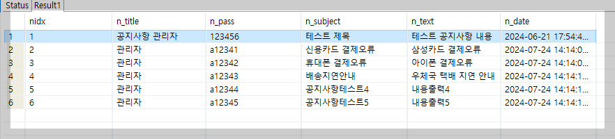 select * from notice order by nidx desc;