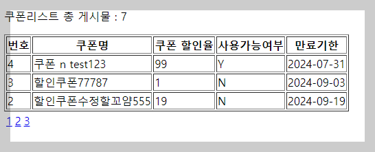 <p>쿠폰리스트 총 게시물 : ${total}</p>