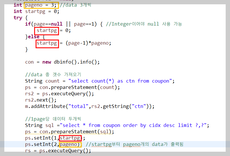 ps.setInt(2,pageno); //startpg부터 pageno개의 data가 출력됨
